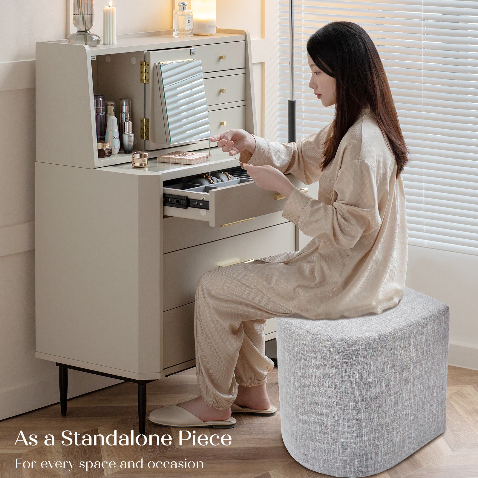 Ottoman Material: Linen fabric, foam