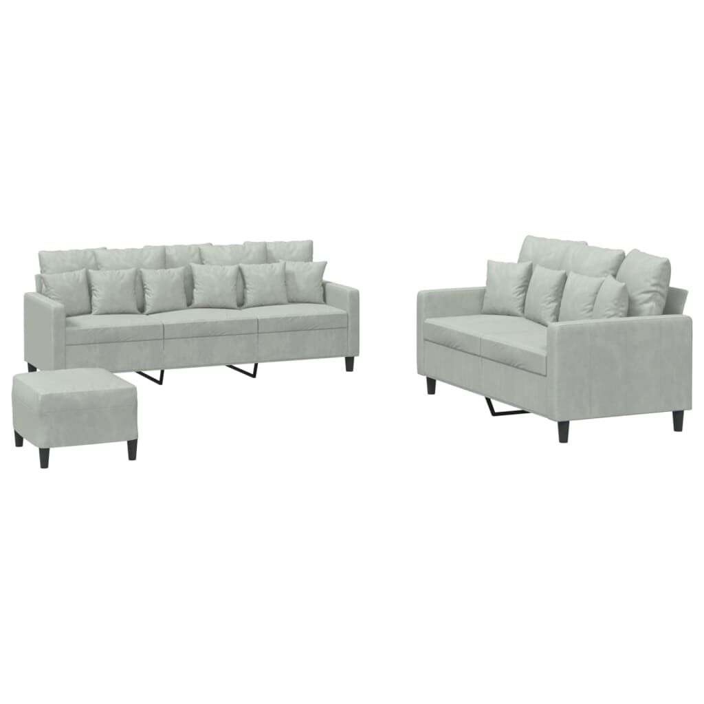 $902.69This sofa set is an excellent place for chatting, reading, watching TV, or just relaxing. It is meant to be a focal point in your home. Soft velvet: Velvet is a soft and comfortable fabric that feels nice against the skin.Sturdy and stable frame: The plywood and metal frame of the sofa seating ensures sturdiness and stability. Comfortable seat experience: The sofa is highly comfortable with the thickly padded seat, armrests, and back pillow.Versatile footstool: The footstool is suitable for resting your feet when you lie on a sofa or offering you an additional seat in your room. Additionally, the simple design and compact size make it ideal for almost all your living spaces.