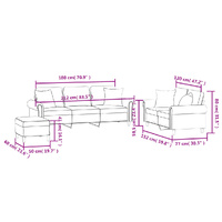 This sofa set is an excellent place for chatting, reading, watching TV or just relaxing. It is meant to be a focal point in your home. Soft velvet: Velvet is a soft and comfortable fabric that feels nice against the skin.Sturdy and stable frame: The plywood and metal frame of the sofa seating ensures sturdiness and stability.Comfortable seat experience: The sofa is highly comfortable with the thickly padded seat, armrests and back pillow.Practical couch pillows: These square throw pillows not only spruce up your decor but can also add extra comfort when you are seated or lying.Versatile footstool: The footstool is suitable for resting your feet when you lie on a sofa, or offering you an additional seat in your room. Additionally, the simple design and compact size make it ideal for almost all your living spaces.