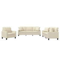 $1,018.79This sofa set is an excellent place for chatting, reading, watching TV or just relaxing. It is meant to be a focal point in your home. Durable faux leather: Premium faux leather is a highly durable material. It is resistant to stain, making it easy to clean with a damp cloth. The smooth surface also gives a luxurious look and the beauty of real leather.Sturdy and stable frame: The plywood and metal frame of the sofa seating ensures sturdiness and stability.Comfortable seat experience: The sofa is highly comfortable with the thickly padded seat, armrests and back pillow.Practical couch pillows: These square throw pillows not only spruce up your decor, but can also add extra comfort when you are seated or lying.