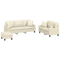 $900.89This sofa set is an excellent place for chatting, reading, watching TV or just relaxing. It is meant to be a focal point in your home. Durable faux leather: Premium faux leather is a highly durable material. It is resistant to stain, making it easy to clean with a damp cloth. The smooth surface also gives a luxurious look and the beauty of real leather.Sturdy and stable frame: The plywood and metal frame of the sofa seating ensures sturdiness and stability.Comfortable seat experience: The sofa is highly comfortable with the thickly padded seat, armrests and back pillow.Practical couch pillows: These square throw pillows not only spruce up your decor, but can also add extra comfort when you are seated or lying.Versatile footstool: The footstool is suitable for resting your feet when you lie on a sofa, or offering you an additional seat in your room. Additionally, the simple design and compact size make it ideal for almost all your living spaces.