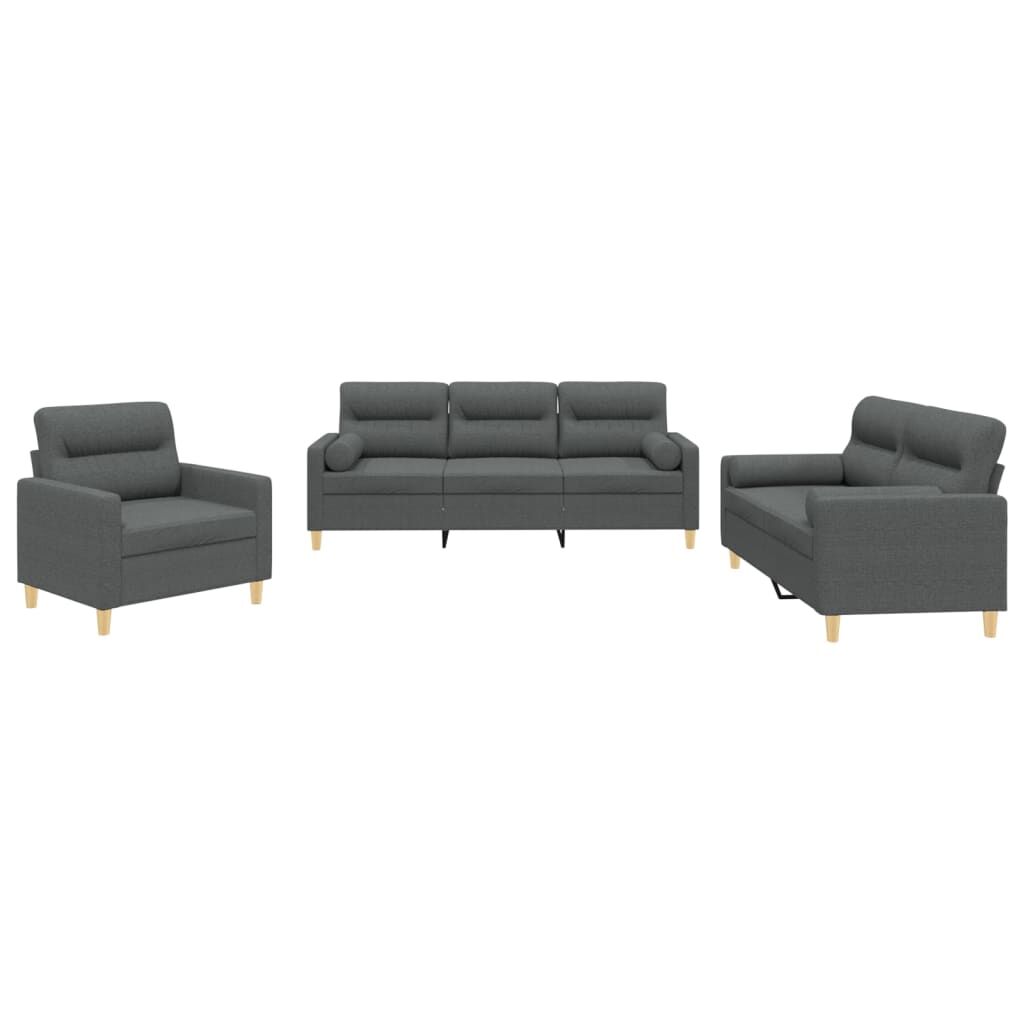 This sofa set is an excellent place for chatting, reading, watching TV or just relaxing. It is meant to be a focal point in your home. Durable fabric: The fabric features a simple and clean look while remaining breathable and long-lasting.Sturdy and stable frame: The plywood and metal frame of the sofa seating ensures sturdiness and stability.Comfortable seat experience: The sofa is highly comfortable with the thickly padded seat, armrests and back pillow.Practical roll pillows: These cylinder pillows not only spruce up your decor, but can also add extra comfort when you are seated or lying.