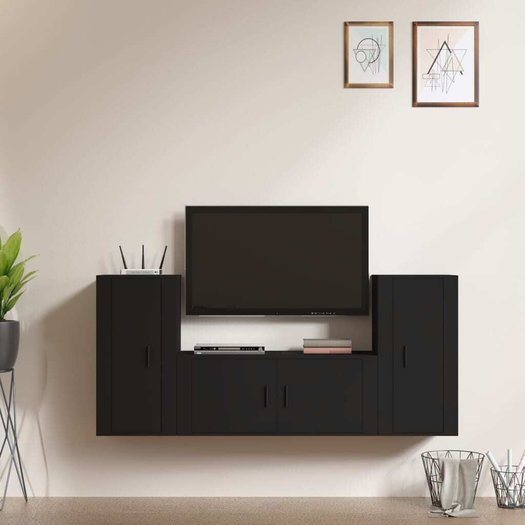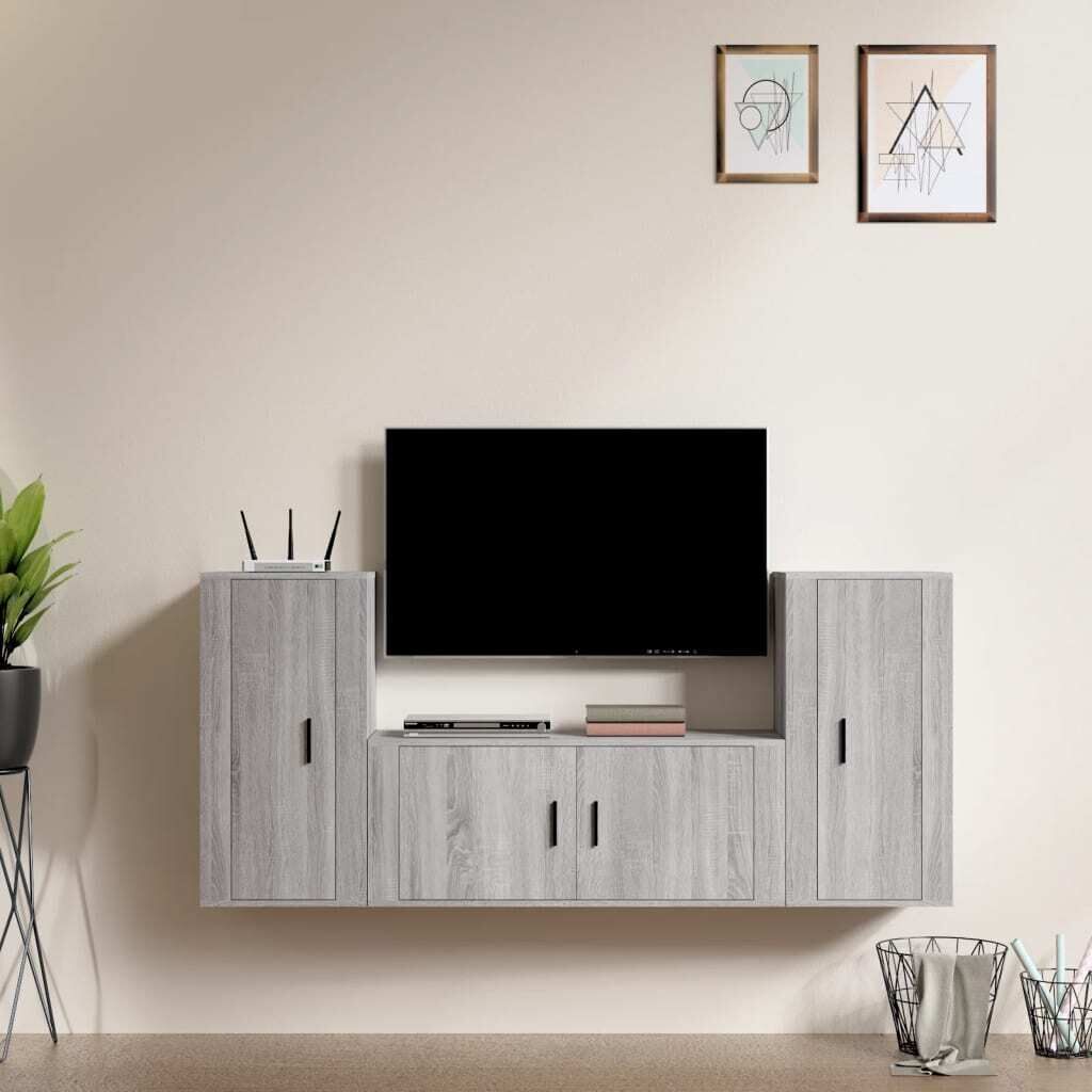 NOW $265.97This classic TV cabinet set is designed to be a focal point of your room, featuring a trendy yet practical design. Sturdy material: The engineered wood is of exceptional quality with smooth surface and also features strength, stability and resistance to moisture.Ample storage space: The TV stand set provides ample storage space to keep all your magazines, DVDs and any other items well organised.Wall-mounted design: The TV unit doesn't take any floor space. You can hang it on the wall easily. Good to know:To make assembly as easy as possible, each product is delivered with a manual.Screws and plugs for inside the wall are not included. We advise to find and use screws and plugs suitable specifically for your walls. If you're not sure, you can consult with a professional. Please read and follow each step of the instructions.