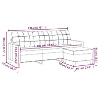 This 3-seater sofa with footstool is an excellent place for chatting, reading, watching TV or just relaxing. It is meant to be a focal point in your home. Durable faux leather: Premium faux leather is a highly durable material. It is resistant to stain, making it easy to clean with a damp cloth. The smooth surface also gives a luxurious look and the beauty of real leather.Sturdy and stable frame: The plywood and metal frame of the sofa with footstool ensures sturdiness and stability.Comfortable seat experience: The armchair is highly comfortable with the thickly padded seats, armrests and back pillows.Versatile footstool: The stool is suitable for resting your feet when you lie on a sofa or recliner, or offering you an additional seat in your room. Additionally, the simple design and compact size make it ideal for almost all your living spaces.Eye-catching design: Featuring a simple yet modern design, this sofa with footstool is meant to be an eye-catcher in your room.