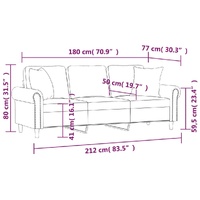 This 3-seater sofa, standing out with its modern design and throw pillows, will be an excellent place for chatting, watching TV or just relaxing. Soft velvet: Velvet is a soft, luxurious fabric that is recognised by its dense pile of evenly cut fibres that have a smooth nap. Velvet fabric features a distinctively soft feel, making it pleasant to touch.Sturdy and stable frame: The metal frame of the lounge sofa ensures sturdiness and stability.Throw pillows with inserts: These sofa pillows come with PP cotton inserts, so you don't bother to buy fillings.Comfortable seat experience: The sofa is highly comfortable with the thickly padded seats, armrests and back pillows. Besides, the decorative pillows can add extra comfort when you are seated or lying.