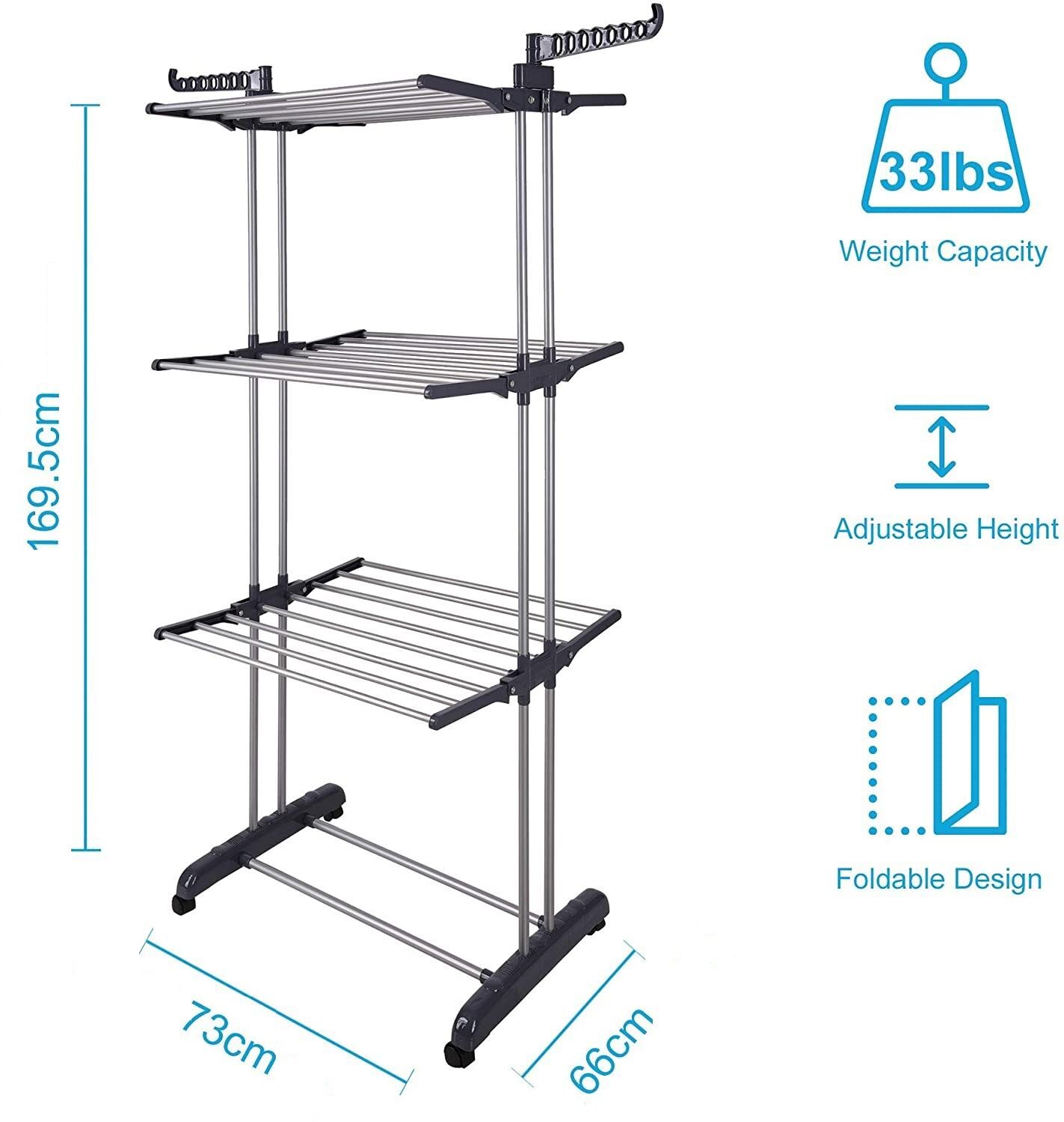 $153.893 Tier Foldable Clothes Drying Rack for Laundry Dryer with Hanger Stand Rail Indoor