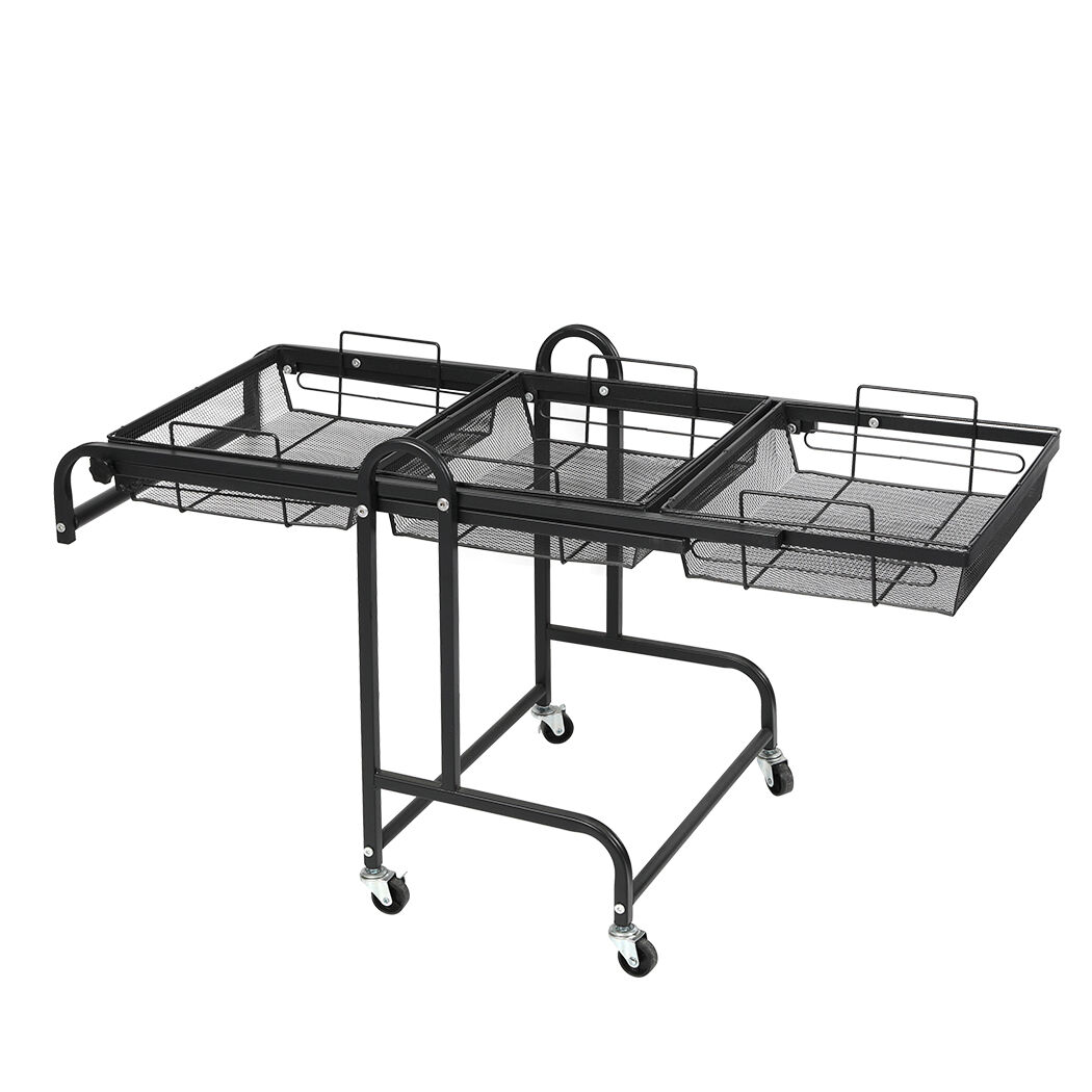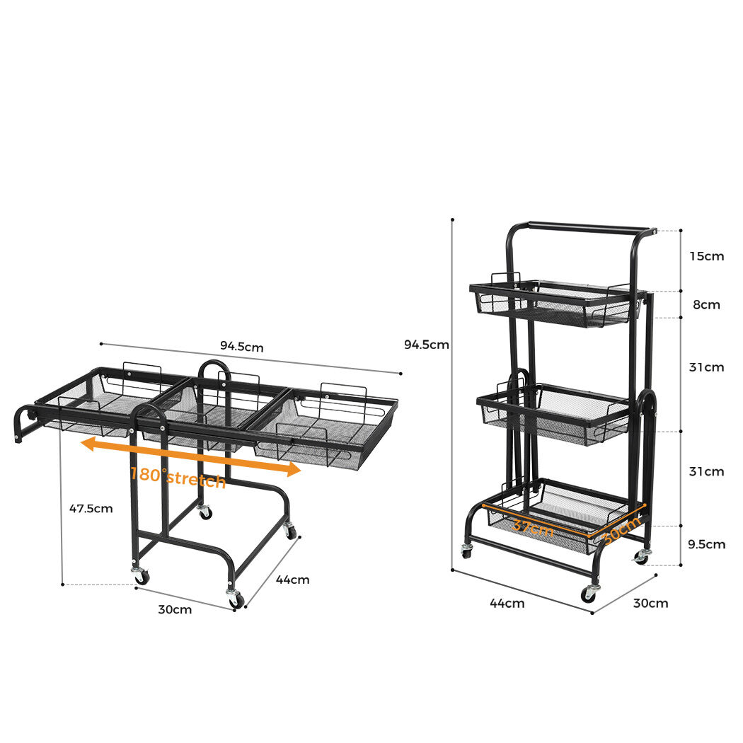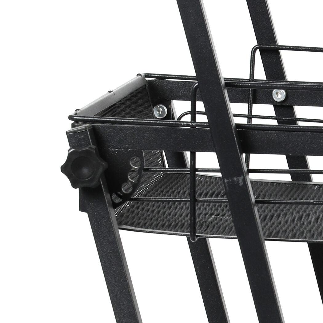 Roll your study and durable kitchen cart on wheels around. Your carts powder-coated carbon steel lasts and lasts. Round handle makes it comfortable to push. Free spinning castor wheels with brakes to stay put. Steel mesh baskets give air flow around your items.