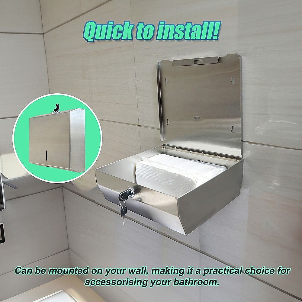$50.21This Stainless Steel Hand Paper Towel Dispenser is a great option for your restaurant or business restrooms. It is quick to install and can be mounted on your wall, making it a practical choice for accessorising your bathroom. The simple yet modern design makes it a great bathroom accessory for commercial restrooms and kitchens. And, the durable stainless steel used in this Heavy-Duty Paper Towel Holder ensures that it will hold up to regular use in high-traffic areas.