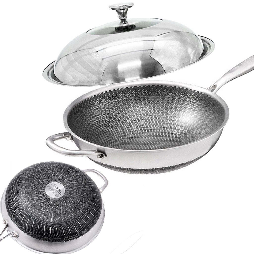 1 x Double Sided Screen Honeycomb Wok with Upright Clear Glass Lid