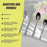 Made of durable and gleaming stainless steel, your set comes with 32 pieces of tableware. Your set includes eight pieces each of dinner knives, forks, tablespoons and teaspoons.