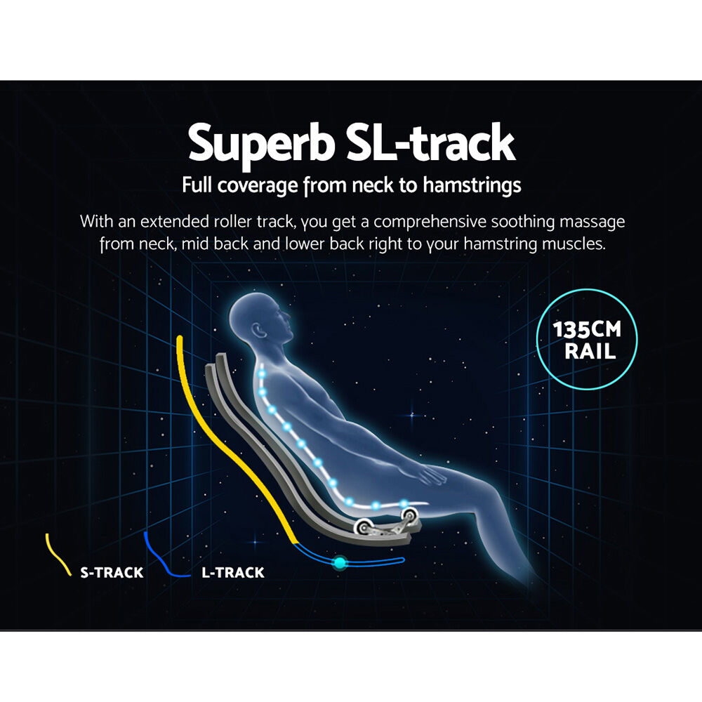 NOW $1,814.38Incorporating the latest smart massage technology and enhanced spatial comfort, our Livemor Ultima 3D Electric Massage Chair is designed to deliver a truly exceptional deep tissue massage experience synonymous with the human touch and more. Among its many technological advancement is an extended 135cm SL track that provides full body massage coverage from your head right to your hamstring muscles. The 3D roller track actually follows the curvature of your spine and extends beyond to your thighs to ensure that all part of your body is not amiss with its soothing massages. Better still, the massage chair also has an automatic body scanning function that maps out the key areas of neck and back for a consistent massage. With a fascinating array of full body massage programs and complex massage techniques with even more airbags, you are certainly not lacking in choice. Adjustments can also be made for massage intensity and speed as well as width. Not least, you can get to enjoy your zero-gravity massage with your favourite music or eBook via a convenient bluetooth connection.