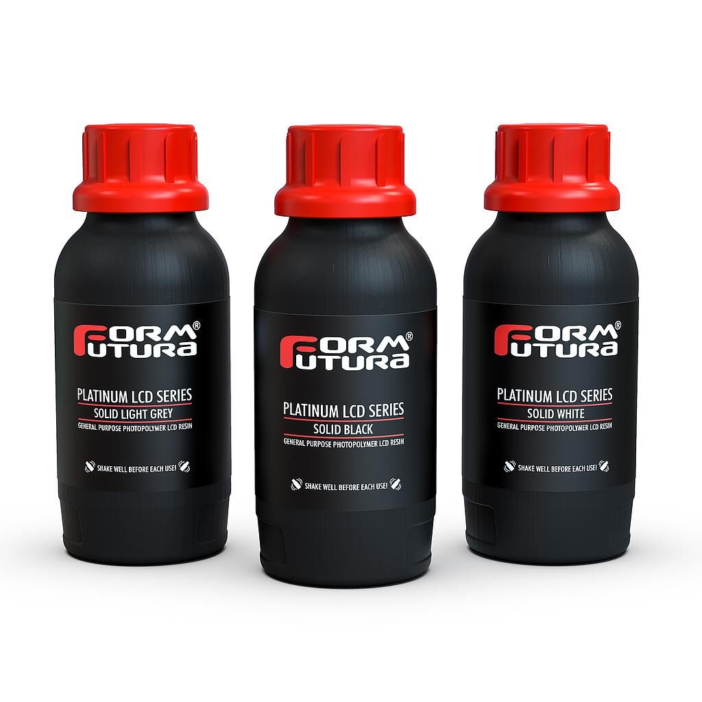The Platinum LCD Series - Solid - Resin Pack contains theSolid Black,Solid White,Solid Light Greyresins ( 500g each)