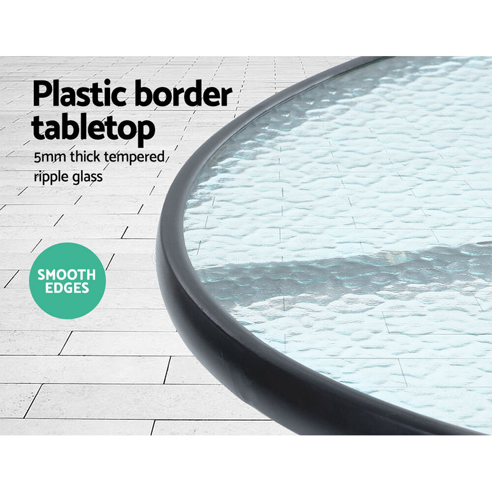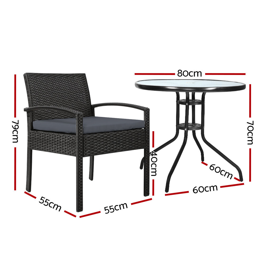 $226.79Enjoy the pleasant outdoors or have a nice chat with friends over a cuppa with our Gardeon Outdoor Bistro Set. With its chic and trendy profile, the set comes with a glass-top table and two wicker chairs. The elegant table is stunning in looks and equally as functional. The thick steel frame makes it durable and the 5mm thick tempered ripple glass does not only look stylish, it is easy to clean. Plus, there is a built-in hole for your parasol for you to relax outdoors for as long as you like during the hot summers without the fear of getting sunburnt. The chair is finished in meticulously weaved UV-resistant and weather-resistant PE wicker with a strong and sturdy steel frame construction. The exotic design, spacious seating and 5cm thick high-density foam cushions ensure comfort and style are always in place. Best of all, the removable and washable seat cushion cover makes cleaning up hassle-free. Together, the set is designed to please as well as stand up to the weather elements and the non-slip feet make the set suitable for use in even the most slippery of situations. With so much going for it, the bistro set certainly deserves its coveted space in your lovely backyard, deck or patio. Or even indoors for a unique presence.