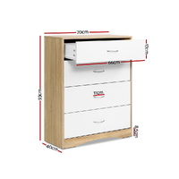 Introducing our Artiss Chest of Drawers. With four spacious drawers, each fitted with a smooth glide mechanism, it provides ample storage to keep your space organized and clutter-free. This chest of drawers, offering a blend of style and utility, is an unmissable addition to your furniture ensemble.