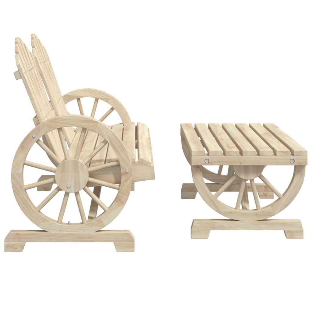 $384.29Enjoy your leisure time with this wooden garden lounge set in Adirondack style. Solid fir wood: Solid fir wood is a beautiful and durable material that maintains its integrity even when exposed to moisture. It does not dry out or warp, making it a reliable choice.Comfortable seating: The garden lounge chair features an ergonomic seat and angled backrest for optimal seating comfort. Additionally, the wagon-wheel shaped armrests provide comfortable space to rest your arms.Practical table: The coffee table is perfect for placing your drinks, food and other decorative items. Good to know:To make sure your outdoor furniture stays beautiful, we recommend protecting it with a waterproof cover.
