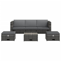 $645.29This rattan sofa set combines style and functionality, and will become the focal point of your garden or patio. The whole furniture set is designed to be used outdoors year-round. Thanks to the weather-resistant and waterproof PE rattan, the sofa set is easy to clean, hardwearing and suitable for daily use. The tempered glass tabletop is also very easy to clean with a damp cloth. The seat set features a sturdy powder-coated steel frame, which is highly durable. It is also lightweight, which makes the modular set easy to move around. The thick, removable seat and back cushions are highly comfortable and washable. The table and ottomans with ample storage space will get your magazines, knick-knacks, and other items organised and within reach. The table and ottomans neatly fit under the sofa and can be easily pulled out or pushed back when not in use to save space. This set is easy to assemble. Delivery includes 1 sofa, 1 table, 2 ottomans, and 8 cushions. Note: We recommend covering the set in the rain, snow and frost.