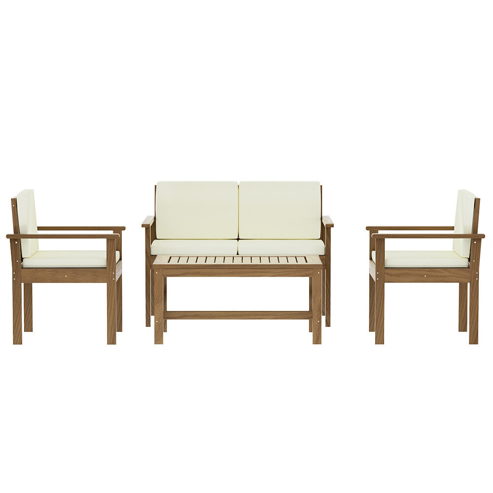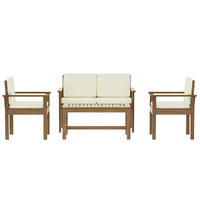 NOW $469.60Get outdoors just in time for summer with the Gardeon 4-seater Outdoor Sofa Set. Featuring a two-seater sofa, two single armchairs and a wide coffee table, there's plenty of space for the whole family. The set is easy to assemble, and you can easily configure the seating into your perfect outdoor set-up. The set is made using solid wood which is known for its durability against the harsh elements, and the table features a slatted design that easily drains during wet weather. The outdoor cushions feature water and UV-resistant covers and thick 5cm high-density foam for comfort. Maintenance is as easy as wiping down the furniture, and you can remove the cushion covers for even easier cleaning. So what are you waiting for? Make the most out of the beautiful weather with a Gardeon 4-seater Outdoor Sofa Set.