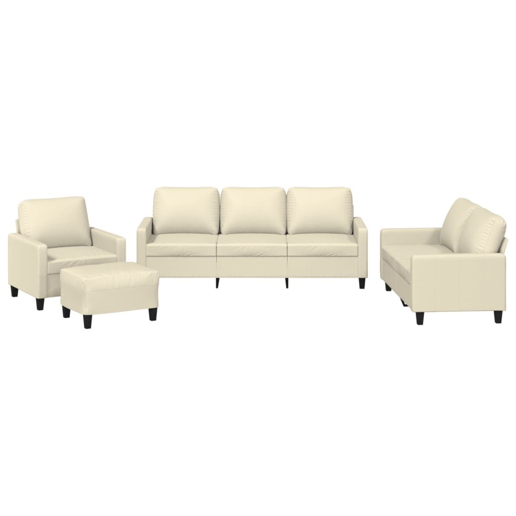 $1,061.09This sofa set is an excellent place for chatting, reading, watching TV or just relaxing. It is meant to be a focal point in your home. Durable faux leather: Premium faux leather is a highly durable material. It is resistant to stain, making it easy to clean with a damp cloth. The smooth surface also gives a luxurious look and the beauty of real leather.Sturdy and stable frame: The plywood and metal frame of the sofa seating ensures sturdiness and stability.Comfortable seat experience: The sofa is highly comfortable with the thickly padded seat, armrests and back pillow.Versatile footstool: The footstool is suitable for resting your feet when you lie on a sofa, or offering you an additional seat in your room. Additionally, the simple design and compact size make it ideal for almost all your living spaces.