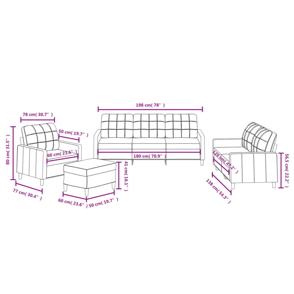 This sofa set is an excellent place for chatting, reading, watching TV or just relaxing. It is meant to be a focal point in your home. Durable fabric: The fabric features a simple and clean look while remaining breathable and long-lasting.Sturdy and stable frame: The plywood and metal frame of the sofa seating ensures sturdiness and stability.Comfortable seat experience: The sofa is highly comfortable with the thickly padded seat, armrests and back pillow.Versatile footstool: The footstool is suitable for resting your feet when you lie on a sofa, or offering you an additional seat in your room. Additionally, the simple design and compact size make it ideal for almost all your living spaces.