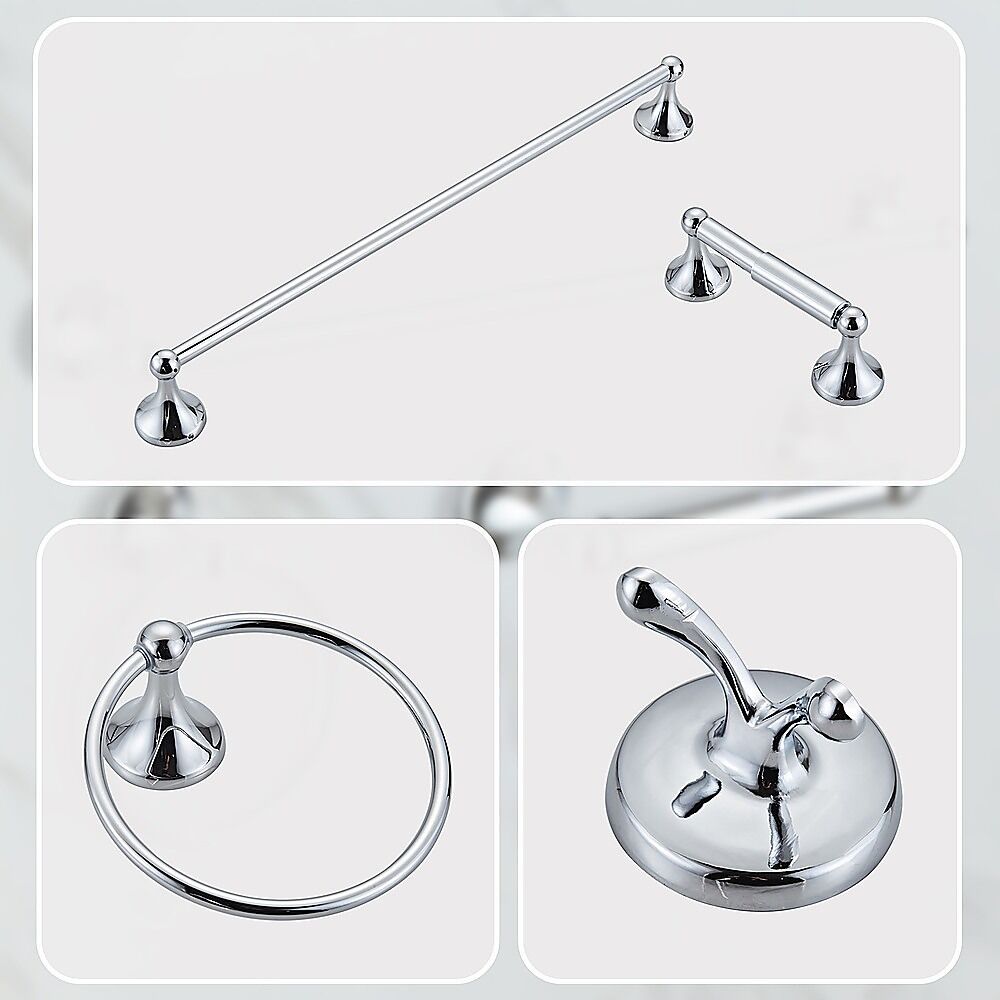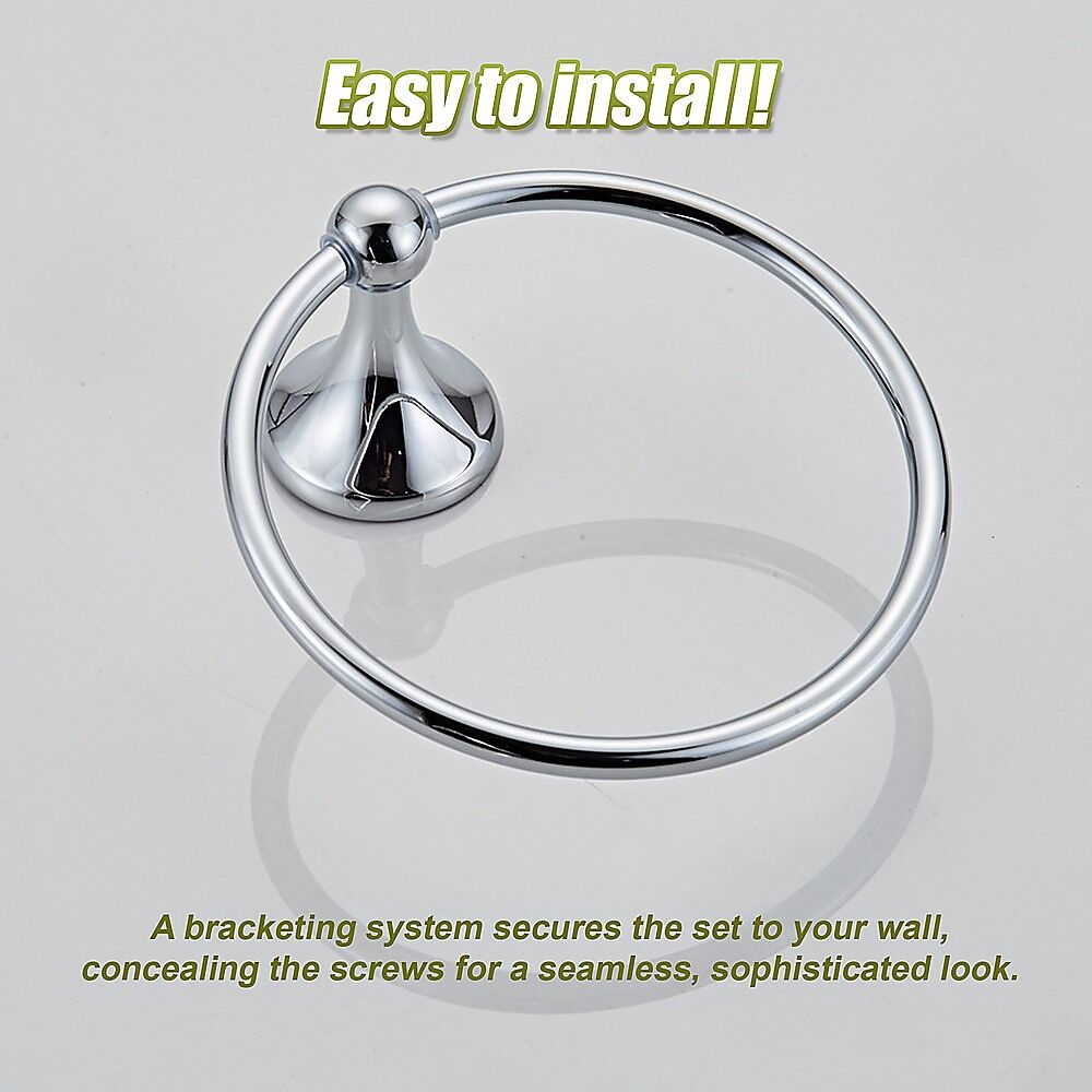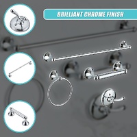 Underneath the sophisticated chrome finish is sturdy zinc base metal, providing durability that will hold up over the years. A bracketing system secures the set to your wall, concealing the screws for a seamless, sophisticated look. Wall-mounting hardware is included, so you can install it the moment it arrives. Combine timeless aesthetics and years of reliable service with this chrome bathroom set. Get yours today.