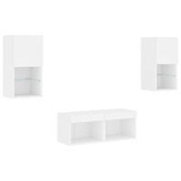 $140.42These TV wall cabinets with LED lights are the perfect solution for your living space to maximise space and keep the floor areas uncluttered. Durable material: The engineered wood is of exceptional quality with smooth surface and also features strength, stability and resistance to moisture. Made of engineered wood, these floating TV units are sturdy and durable.Ample storage space: The TV wall units have ample storage space to place your DVD players, books, magazines or other decorative items.RGB LED lights: The wall media units are equipped with vibrant RGB LED lights. With various customisable menus, you can effortlessly change the colour of the lights and even set them to adjust automatically.Wall-mounted design: These TV units with storage can be wall-mounted to add extra storage space. That way, you can maximise your floor space and keep the area clean. Good to know:Screws and plugs for inside the wall are not included. We advise to find and use screws and plugs suitable specifically for your walls. If you're not sure, you can consult with a professional. Please read and follow each step of the instructions.The product has a USB connector that requires a certified 5V USB power source (not included).