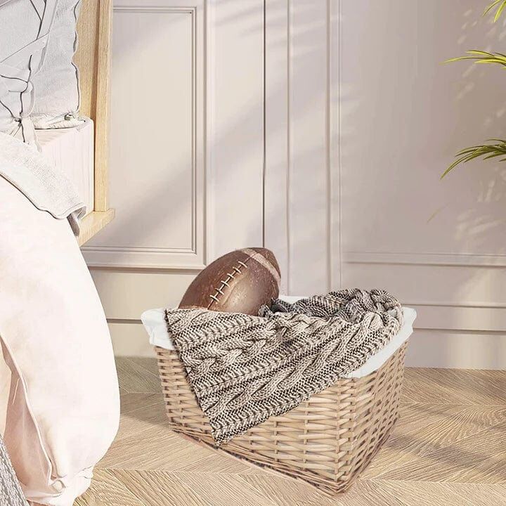 $59.84Our decorative set of 4 baskets is the perfect home storage solution. Made from wicker, this beautifully hand-braided basket has a natural beige hue that will accommodate any decor. It's easy to carry and makes for excellent home organization as well.