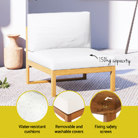 $625.49Get outdoors just in time for summer with the Gardeon 4-seater Outdoor Sofa Set. Featuring 3 single sofas, a corner seat and a wide coffee table, theres plenty of space for the whole family. The set is easy to assemble, and you can easily configure the seating into your perfect outdoor set-up. The set uses solid Acacia wood, while the outdoor cushions feature water-resistant, UV-resistant covers, and a thick 12cm high-density foam core for comfort. The tabletops slatted design easily drains during wet weather and has plenty of room to hold your outdoor essentials. Maintenance is as easy as wiping down the furniture, and you can remove the cushion covers for even easier cleaning. So what are you waiting for? Make the most out of the beautiful weather with a Gardeon 4-seater Outdoor Sofa Set.