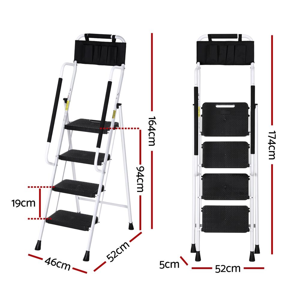 $144.89Climb your way to the top with the Giantz 4-step Ladder. Made from a lightweight steel construction, the step ladder is easy to carry but incredibly stable. The secure design and additional bracing make the step ladder extra safe and stable when working at height. It features a non-slip tread on each step, a foam easy-grip safety handle, two side handrails and non-slip rubber feet to prevent slipping and floor damage. With a tool bag ready and in reach, you'll never be stuck without your essential tools for the job.The ladder folds down easily, so you can slip it into any storage space. It is easy to carry and suitable for all kinds of odd jobs on any surface, indoors or outdoors. No matter what needs work around your home, have a Giantz 4-step Ladder at the ready!