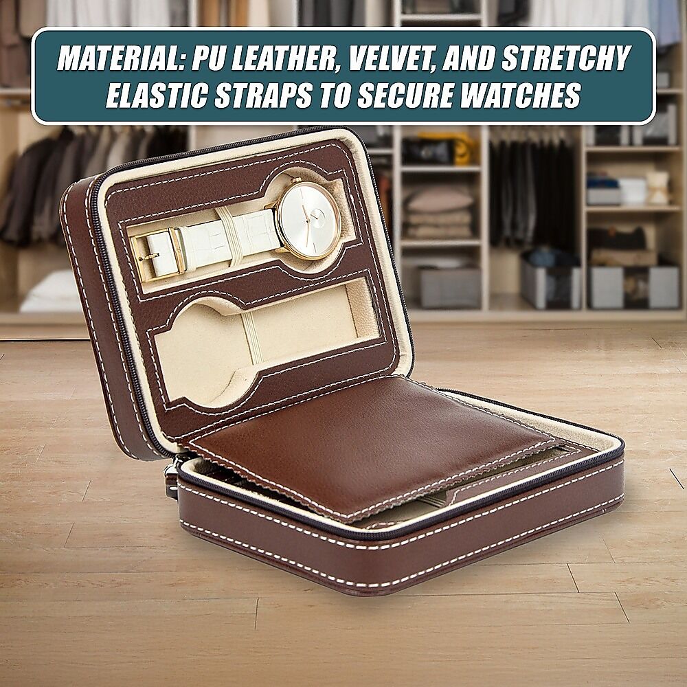 A zippered closure makes this case perfect for travel. Its sturdy construction protects your watch from damage during baggage handling and storage. Stretchy elastic straps keep each watch in its place. Light in weight, it's the perfect travel case, especially with many airlines imposing strict limits on weight for both checked baggage and carry-ons.