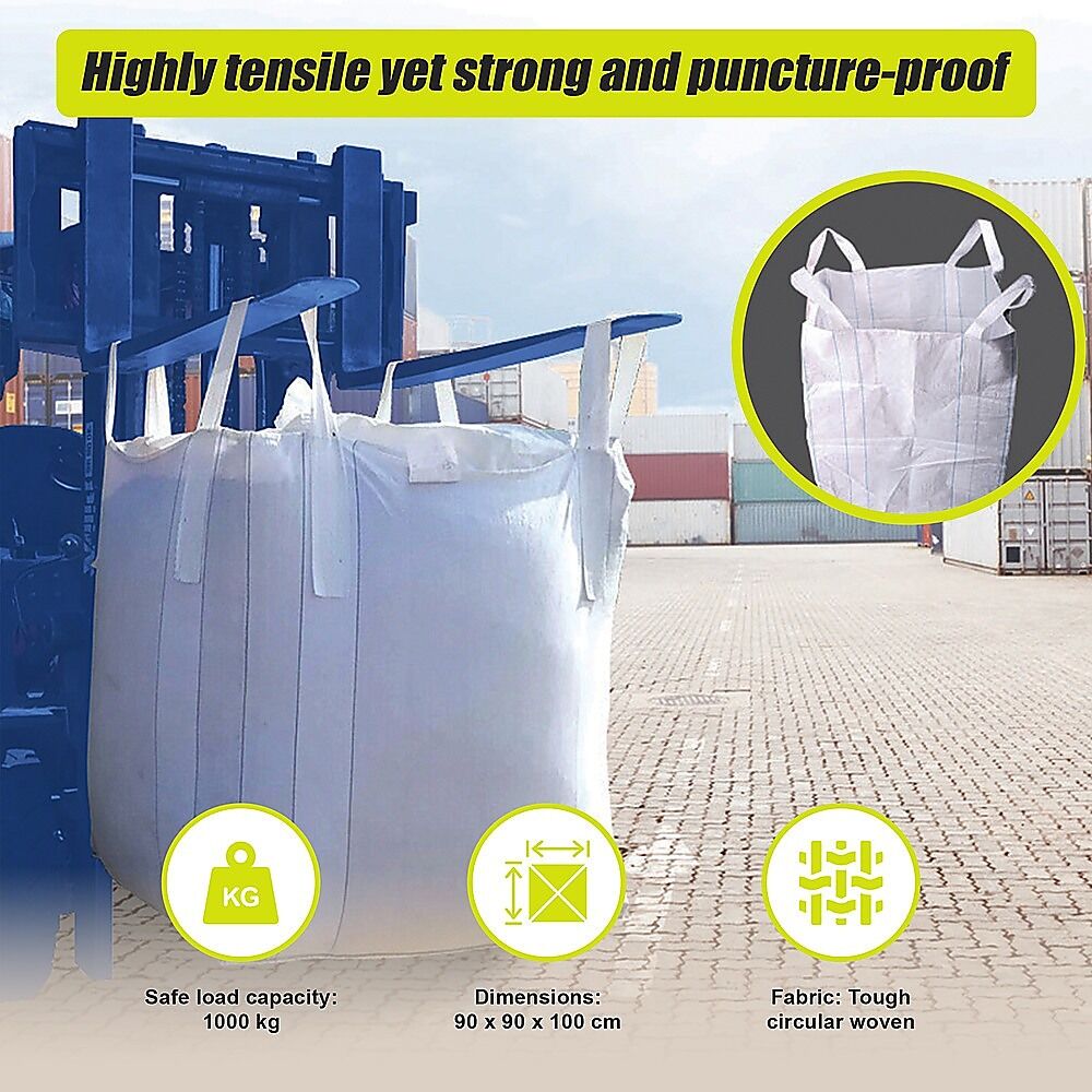 Made from tough polypropylene, these bags can hold up to one tonne (1000 kg) of material. Four cross-corner loops provide stability and allow easy handling, while its circular woven fabric provides a tough surface that resists rips, tears, and holes.