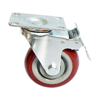 With a 550-kilogramme brake load, these 100-millimetre professional-grade wheels are just what you need for your trolleys and workbenches. These wheels won't mark your floors, thanks to the polyurethane wheels. Duplex-bearing construction makes rolling effortless. Two wheels have foot pedal locking brakes for easy stops and loading.
