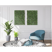 An elegant artificial vertical garden panel unlike any other – each panel is curated with a stunning lush green foliage blended with artificial stems inserted throughout to add a touch of white flowers and burgundy glasses to create the ultimate in lushness. You’ll be impressed with the density, quality and longevity of these superior artificial vertical gardens.