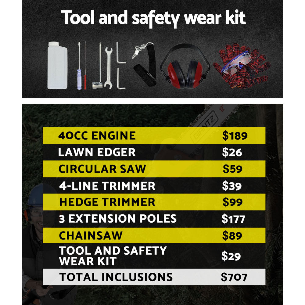$278.06The GIANTZ Pro-series Chainsaw is the answer for people who are looking for doing serious cutting and bring it to the next level. Featuring a powerful 40cc, 4-stroke full crank engine for smoother starting and running, the chainsaw trims and cuts every gardening challenge in its path with minimum hassle. Efficient and lightweight in design and equipped with a comfortable D-handle, the chainsaw allows quick-connect coupling for easy change of attachments. In fact, up to seven attachments for every conceivable cutting job. Better still, the chainsaw also comes with three extra thick alloy extension poles which allows you to reach for those hard-to-get branches. Not least, the cutting equipment also features fine quality construction and cutting-edge technology to ensure the chainsaw remains reliable, durable and sharp consistently.