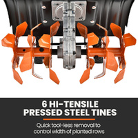With 26 hi-tensile pressed steel tines you can reach a depth of up to 200mm and a maximum tilling width 400mm (15"), so you'll generally only need one pass to finely mill your soil for better preparation and growth. The blades are removable without the need for tools so that you can adjust the width to suit the planted rows, or to remove roots or debris.