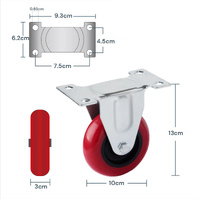 Fixed Caster Wheels , Tire Diameter 4" (10cm) , Plate Size 6.2cm x 9.3cm