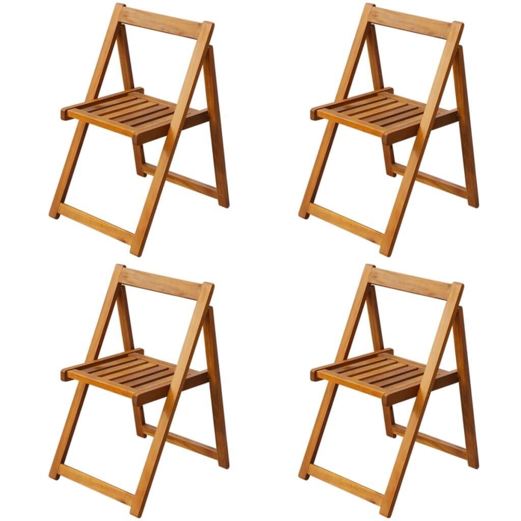 $435.19This outdoor wooden dining set will make a great addition to your garden, patio, or balcony. The drop leaf table and folding chairs have a sturdy construction and are made of high-quality acacia wood with a natural oil finish, making this dining set durable, stable, easy to clean and weatherproof. Both the table and the chairs can be easily folded away when not in use and the chairs can be conveniently stored underneath the table, so they won't take up extra storage space. Delivery includes 1 drop leaf table and 4 folding chairs.
