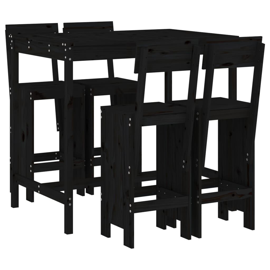 5 Piece Garden Bar Set Black Solid Wood Pine