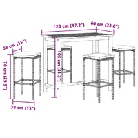 $262.21This garden bar set with an elegant and contemporary design will be a great choice for dining or relaxing in the garden. Durable material: PE rattan, also known as poly rattan, is a strong, low-maintenance synthetic material that looks like natural rattan. It's lightweight, easy to clean, and commonly used for outdoor furniture due to its durability and weather-resistant properties. Made of lightweight PE rattan, these bar stools are sturdy and easy to move. Sturdy tabletop: Solid acacia wood is a beautiful natural material. Acacia wood is a tropical hardwood, which is dense, sturdy, and durable. Made of solid acacia wood, this bar table is sturdy and stable. You can place your snacks, drinks and any of your favourite decorations. Comfortable seating experience: The thickly padded seat cushions and the built-in footrests add additional seating comfort for the stool. Removable and washable cover: These seat cushions feature removable covers for easy washing and maintenance. Good to know:To make sure your outdoor furniture stays beautiful, we recommend protecting it with a waterproof cover.