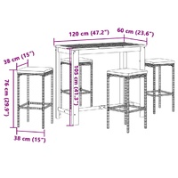 $364.51This garden bar set with an elegant and contemporary design will be a great choice for dining or relaxing in the garden. Durable material: PE rattan, also known as poly rattan, is a strong, low-maintenance synthetic material that looks like natural rattan. It's lightweight, easy to clean, and commonly used for outdoor furniture due to its durability and weather-resistant properties. Made of lightweight PE rattan, these bar stools are sturdy and easy to move. Sturdy tabletop: Solid acacia wood is a beautiful natural material. Acacia wood is a tropical hardwood, which is dense, sturdy, and durable. Made of solid acacia wood, this bar table is sturdy and stable. You can place your snacks, drinks and any of your favourite decorations. Comfortable seating experience: The thickly padded seat cushions and the built-in footrests add additional seating comfort for the stool. Removable and washable cover: These seat cushions feature removable covers for easy washing and maintenance. Good to know:To make sure your outdoor furniture stays beautiful, we recommend protecting it with a waterproof cover.