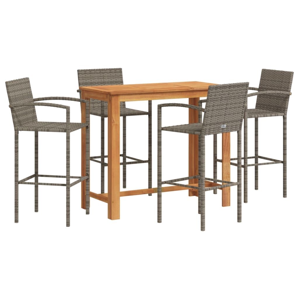 $529.12This garden bar set with an elegant and contemporary design will be a great choice for dining or relaxing in the garden. Durable material: PE rattan, also known as poly rattan, is a strong, low-maintenance synthetic material that looks like natural rattan. It's lightweight, easy to clean, and commonly used for outdoor furniture due to its durability and weather-resistant properties. Made of lightweight PE rattan, these bar stools are sturdy and easy to move. Sturdy tabletop: Solid acacia wood is a beautiful natural material. Acacia wood is a tropical hardwood, which is dense, sturdy, and durable. Made of solid acacia wood, this bar table is sturdy and stable. You can place your snacks, drinks and any of your favourite decorations. Comfortable seating experience: The built-in footrests add additional seating comfort for the stool. Good to know:To make sure your outdoor furniture stays beautiful, we recommend protecting it with a waterproof cover.