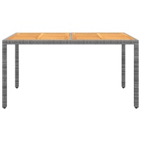 $407.33This garden dining set, featuring an elegant design, is an excellent choice for your dining or lounging on your patio or garden. Strong frame: Featuring a powder-coated steel frame covered with weather-resistant PE rattan with UV protection, the table and chairs are durable and stable.Comfortable chairs: The garden chairs are designed in a more ergonomic shape for maximum comfort. Cushions are included for added support.Practical table: The tabletop is made of solid acacia wood in strong support, easy to clean and maintain. Note:In order to extend the life of your outdoor furniture, we recommend you to clean it regularly and do not leave it outdoors without protection unnecessarily.Clean: Use a mild soap solution.Storing: If possible, store in a cool, dry place indoors. If the product is stored outdoors, protect it with a waterproof cover. Wipe and dry the excess water or snow from flat surfaces after a rain or snowfall. Allow sufficient air circulation to avoid moisture-related damage.