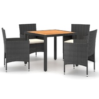 $569.15This stylish garden dining set provides you with a leisurely and comfortable time with your family and friends. Featuring a powder-coated steel frame covered with weather-resistant PE rattan with UV protection, the table and chairs are durable and stable. Designed with curved backrest and armrest, the chairs provide you with comfort. The cushions are included for added comfort and the zipped cover is removable for easy washing. The tabletop is made of solid acacia wood in strong support, which is easy to clean and maintain. Additionally, the lightweight construction makes each piece easy to move, rearrange and transport. Note: In order to extend the life of your outdoor furniture, we recommend you to clean it regularly and do not leave it outdoors without protection unnecessarily.Clean: Use a mild soap solution.Storing: If possible, store in a cool, dry place indoors. If the product is stored outdoors, protect it with a waterproof cover. Wipe and dry the excess water or snow from flat surfaces after a rain or snowfall. Allow sufficient air circulation to avoid moisture-related damage.