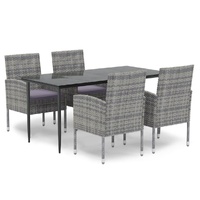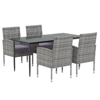 $533.81Enjoy a nice meal or afternoon tea in your outdoor space with this garden dining set! Weather-resistant material: PE rattan, also known as poly rattan, is weather resistant and easy to clean. It remains beautiful on the outside for a long period of time. It offers great quality, convenience and an aesthetic look.Sturdy frame: The powder-coated steel frames make the outdoor dining set sturdy and stable for daily outdoor use.Practical tabletop: The smooth tabletop of the dining table is made of tempered glass which is easy to clean with a damp cloth. Additionally, the sturdy tabletop is perfect for placing meals, drinks, and other decorative items.Comfortable design: Designed with curved backrests and armrests, these outdoor chairs provide maximum comfort.Extra comfort: The thickly padded cushions provide ultimate comfort during your sitting time. Note:In order to extend the life of your outdoor furniture, we recommend you to protect it with a waterproof cover.Each product comes with an assembly manual in the box for easy assembly.