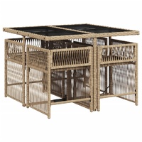 $401.75This garden dining set is a great choice for al fresco dining or just relaxing in the garden, backyard, or patio. Durable material: PE rattan, also known as poly rattan, is a strong, low-maintenance synthetic material that looks like natural rattan. It's lightweight, easy to clean, and commonly used for outdoor furniture due to its durability and weather-resistant properties.Compact storage: These chairs have a flap backrest that can be folded down, making it easy to store them under the table. When folded, they neatly fit under the table, forming a space-saving cube shape.Comfortable seat experience: This outdoor furniture, complete with thickly padded cushions, offers a comfortable seating experience.Removable and washable cover: These seat cushions feature removable covers for easy washing and maintenance. The cushion covers have a flap at the back for easy attachment to the backrests.Glass tabletop: The outdoor table's top is made from strong and durable tempered glass, making it easy to clean with a damp cloth and adding a touch of elegance to your outdoor space. Good to know:To make sure your outdoor furniture stays beautiful, we recommend protecting it with a waterproof cover.