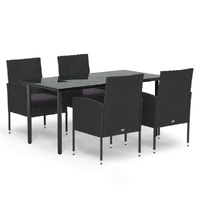 $443.60Enjoy a nice meal or afternoon tea in your outdoor space with this garden dining set! Weather-resistant material: PE rattan, also known as poly rattan, is weather resistant and easy to clean. It remains beautiful on the outside for a long period of time. It offers great quality, convenience and an aesthetic look.Sturdy frame: The powder-coated steel frames make the outdoor dining set sturdy and stable for daily outdoor use.Practical tabletop: The smooth tabletop of the dining table is made of tempered glass which is easy to clean with a damp cloth. Additionally, the sturdy tabletop is perfect for placing meals, drinks, and other decorative items.Comfortable design: Designed with curved backrests and armrests, these outdoor chairs provide maximum comfort.Extra comfort: The thickly padded cushions provide ultimate comfort during your sitting time. Note:In order to extend the life of your outdoor furniture, we recommend you to protect it with a waterproof cover.Each product comes with an assembly manual in the box for easy assembly.