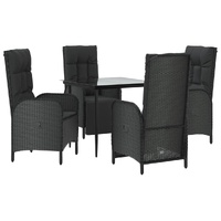 $827.69This trendy garden dining set, featuring an elegant and contemporary design, is a great choice for dining or relaxing in your garden. Weather-resistant material: PE rattan, also known as poly rattan, is weather resistant and easy to clean. It remains beautiful on the outside for a long period of time. It offers great quality, convenience and an aesthetic look.Sturdy frame: The powder-coated steel frames make the outdoor dining set sturdy and stable for daily outdoor use.Practical tabletop: The smooth tabletop of the garden table is made of tempered glass which is easy to clean with a damp cloth. Additionally, the sturdy tabletop is perfect for placing meals, drinks, and other decorative items.Reclining function: The garden chairs are specially designed with a reclining function so that you can adjust the backrest as per your comfort.Comfortable seat experience: The backrest adds extra seating comfort for the garden chair. Also, the thickly padded cushions provide comfort for your sitting time. Good to know:To make assembly as easy as possible, each product is delivered with a manual. Note:To make sure your outdoor furniture stays beautiful, we recommend protecting it with a waterproof cover.