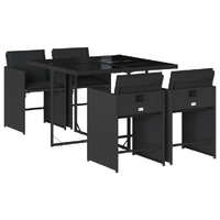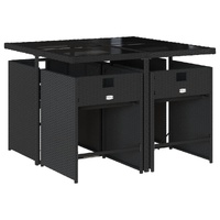 $364.55This garden dining set is a great choice for al fresco dining or just relaxing in the garden, backyard, or on the patio. Durable material: PE rattan, also known as poly rattan, is a strong, low-maintenance synthetic material that looks like natural rattan. It's lightweight, easy to clean, and commonly used for outdoor furniture due to its durability and weather-resistant properties.Compact storage: These chairs have a flap backrest that can be folded down, making it easy to store them under the table. When folded, they neatly fit under the table, forming a space-saving cube shape.Comfortable seat experience: This outdoor furniture, complete with thickly padded cushions, offers a comfortable seating experience.Removable and washable cover: These seat cushions feature removable covers for easy washing and maintenance. The chair cushion covers have a flap at the back for easy attachment to the chairs.Stable and easy-to-clean tabletop: This garden table has a tempered glass table top that is sturdy, durable, and easy to clean with a damp cloth. Good to know: To make sure your outdoor furniture stays beautiful, we recommend protecting it with a waterproof cover.