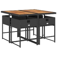 $557.99This garden dining set is a great choice for al fresco dining or just relaxing in the garden, backyard, or on the patio. Durable material: PE rattan, also known as poly rattan, is a strong, low-maintenance synthetic material that looks like natural rattan. It's lightweight, easy to clean, and commonly used for outdoor furniture due to its durability and weather-resistant properties.Compact storage: These chairs have a flap backrest that can be folded down, making it easy to store them under the table. When folded, they neatly fit under the table, forming a space-saving cube shape.Comfortable seat experience: This outdoor furniture, complete with thickly padded cushions, offers a comfortable seating experience.Removable and washable cover: These seat cushions feature removable covers for easy washing and maintenance. The cushion covers have a flap at the back for easy attachment to the backrests.Stable and easy-to-clean tabletop: This garden table has an acacia wood top that is sturdy, durable, and easy to clean with a damp cloth. Good to know:To make sure your outdoor furniture stays beautiful, we recommend protecting it with a waterproof cover.