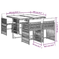 This garden dining set is a great choice for al fresco dining or just relaxing in the garden, backyard, or patio. Durable material: PE rattan, also known as poly rattan, is a strong, low-maintenance synthetic material that looks like natural rattan. It's lightweight, easy to clean, and commonly used for outdoor furniture due to its durability and weather-resistant properties.Compact storage: These chairs have a flap backrest that can be folded down, making it easy to store them under the table. When folded, they neatly fit under the table, forming a space-saving cube shape.Comfortable seat experience: This outdoor furniture, complete with thickly padded cushions, offers a comfortable seating experience.Removable and washable cover: These seat cushions feature removable covers for easy washing and maintenance. The cushion covers have a flap at the back for easy attachment to the backrests.Glass tabletop: The outdoor table's top is made from strong and durable tempered glass, making it easy to clean with a damp cloth and adding a touch of elegance to your outdoor space. Good to know:To make sure your outdoor furniture stays beautiful, we recommend protecting it with a waterproof cover.