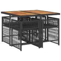 $423.14This garden dining set is a great choice for al fresco dining or just relaxing in the garden, backyard, or patio. Durable material: PE rattan, also known as poly rattan, is a strong, low-maintenance synthetic material that looks like natural rattan. It's lightweight, easy to clean, and commonly used for outdoor furniture due to its durability and weather-resistant properties.Compact storage: These chairs have a flap backrest that can be folded down, making it easy to store them under the table. When folded, they neatly fit under the table, forming a space-saving cube shape.Comfortable seat experience: This outdoor furniture, complete with thickly padded cushions, offers a comfortable seating experience.Removable and washable cover: These seat cushions feature removable covers for easy washing and maintenance. The cushion covers have a flap at the back for easy attachment to the backrests.Stable and easy-to-clean tabletop: This garden table has an acacia wood top that is sturdy, durable, and easy to clean with a damp cloth. Good to know:To make sure your outdoor furniture stays beautiful, we recommend protecting it with a waterproof cover.